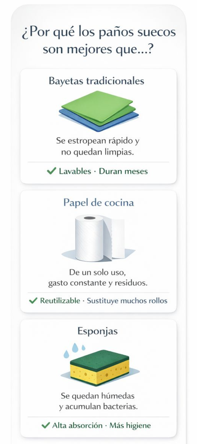 - Donde usarías varias hojas de papel, usas un solo paño.